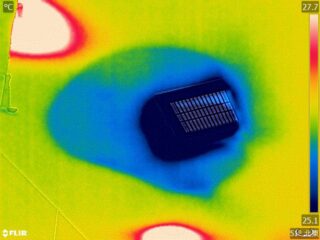 結露やカビが発生した周辺や部屋全体を高性能な赤外線サーモグラフィで調査します。結露水が残っているとその箇所が低温に検出されますので、目に見えない結露やカビの被害範囲を見つけることができます。また、結露発生源の温度を測定できるので、結露発生源も推測できます。